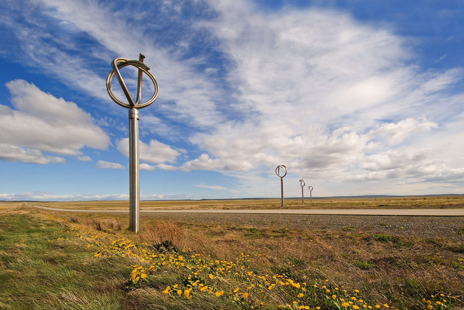 2000 · Stainless Steel · 9 x 2.5 x 118 m · Panamericanan Highway South · ChileDas Projekt HOMMAGE AN DEN WIND ging im Jahr 2000 als Erster Preisträger aus einer landesweiten Ausschreibung des chilenischen Bauministeriums (Ministerio de Obras Públicas, MOP) hervor, Thema: Wind / Leben mit den Elementen in Patagonien. Teil der Arbeit war die Auswahl eines geeigneten Standortes mit Bezug zur Topografie und in unmittelbarem Bezug zur Fernstraße Panamericana (Ruta 9) zwischen den Städten Punta Arenas und Puerto Natales. Der Band „Destination Art“ des Phaidon-Verlags listet das Werk seit 2018 unter dem Titel „Destination Art. 500 Artworks Worth the Trip“ (Phaidon, New York, NY 2018).